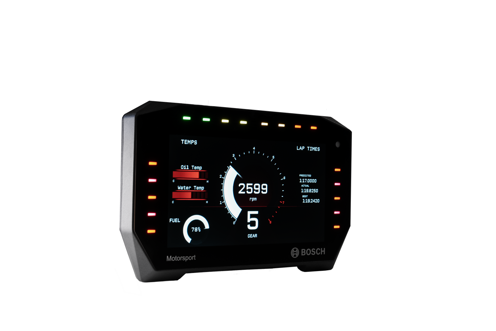 The display DDU 11 integrates a programmable full colour dashboard display with a data logging system for motorsport applications. Additional input devices can be connected via Ethernet, CAN buses, and RS 232.
